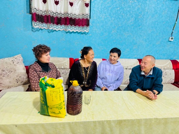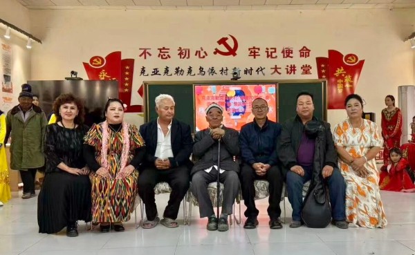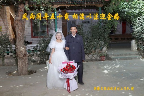 跃进村工作队为6对结婚50周年以上的“金婚”家庭拍纪念照,并送上节日礼物,弘扬优良家风。还向本村的刀郎艺人代表致以节日问候,感谢他们为传承和发展民间文化所做的贡献。