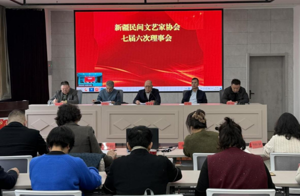 根据中国民协、新疆文联工作部署及协会《章程》规定,3月10日下午,新疆民间文艺家协会七届六次理事会在文联大厦召开。会议以线上线下相结合方式举行,出席理事共34名,由新疆民协主席柳文喜主持。