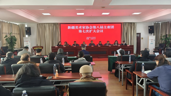 11月20日,新疆美术家协会第八届主席团第七次扩大会议在乌鲁木齐召开。自治区文联党组成员、副主席、新疆美术家协会主席郐振明出席会议并讲话,新疆美协主席团成员出席会议,各艺术委员会负责人及部分理事代表列席会议,新疆美协副主席艾力江·买买提主持会议。