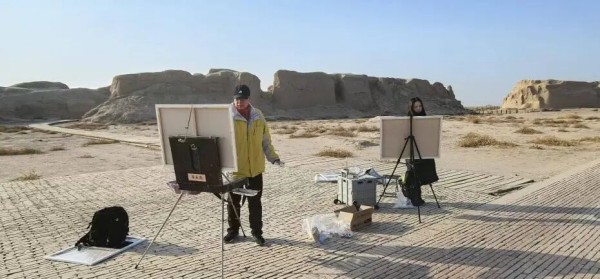 青年艺术家在吐鲁番高昌古城写生