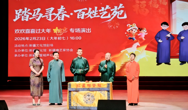 新春将至,岁寒情暖。2026年2月23日,由新疆曲艺家协会、新疆文化馆联合主办,新疆红星相声社承办的 “踏马寻春・百姓艺苑——欢欢喜喜过大年相声专场” 演出在新疆文化馆剧场成功举办,300余名各族群众到场观看。