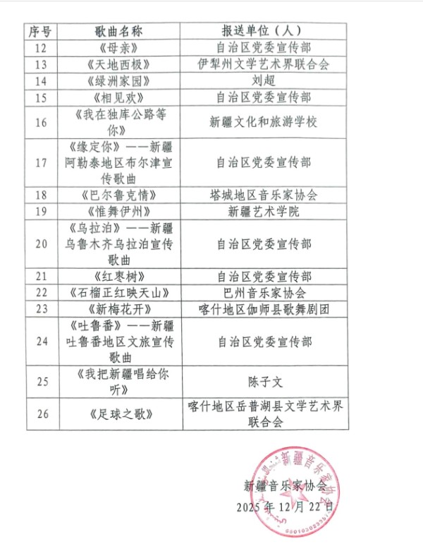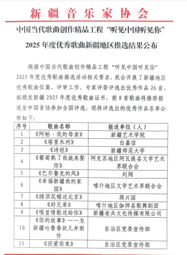 “听见中国听见你”2025年度优秀歌曲新疆地区推选结果公布