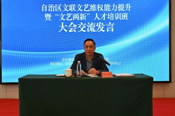 为全面贯彻落实党的二十届三中全会精神,深入学习实践习近平文化思想和习近平法治思想,完整准确全面贯彻落实新时代党的治疆方略,切实履行文联组织“团结引导、联络协调、服务管理、自律维权”职能,6月3日至5日,由新疆文联主办,新疆文联权益保护部、文艺理论研究室(网络文艺工作中心)承办,新疆网络文艺家协会协办的文艺维权能力提升暨“文艺两新”人才培训在乌鲁木齐市举办。自治区文联党组书记、副主席邓选斌出席开班式并作专题辅导报告。自治区文联党组成员、副主席艾力江·牙合甫主持开班仪式并作培训总结。