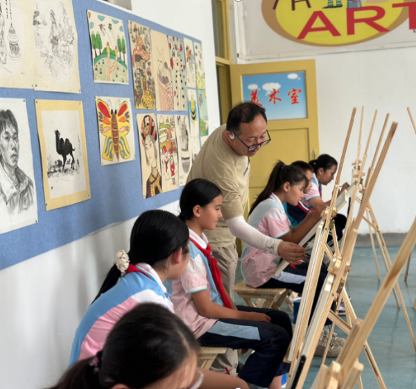 走到北疆,志愿服务又添了“新解法”。针对克拉玛依市乌尔禾区文旅融合的发展需求,艺术家们采用“课堂+现场教学”模式,并且在乌尔禾摄影书画苑开展了美术与书法创作交流活动,把“如何让本地文化更吸睛”的思路落到实处;在哈密市伊吾县、巴里坤县,课堂化作“快乐加油站”——舞蹈老师与基层舞蹈爱好者载歌载舞;书法老师详解技艺精髓;国画老师从笔墨运用入手指导;曲艺老师认真倾听演奏,逐点打磨艺人演奏技巧,现场氛围热烈,艺术带来的满足感溢于言表。